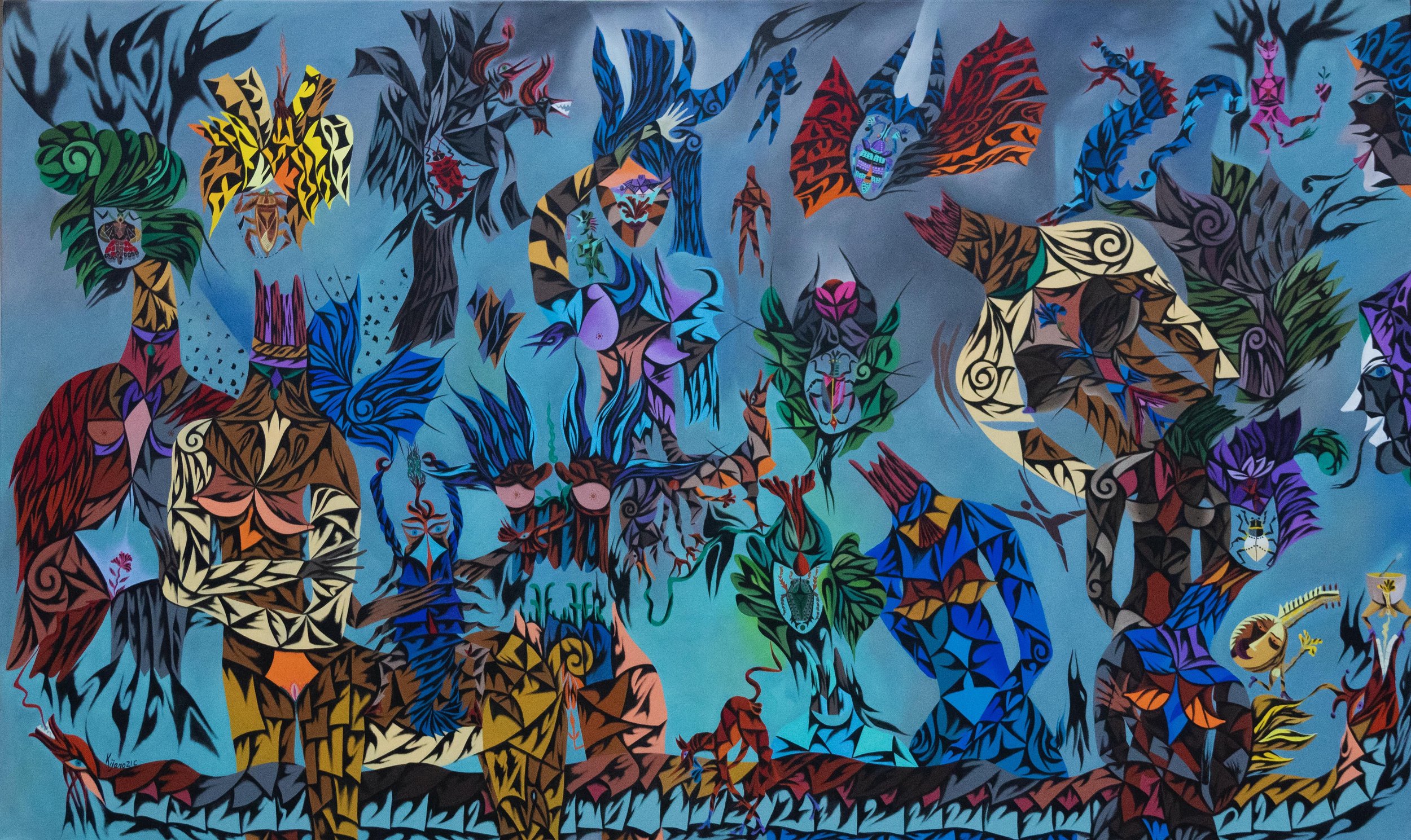 Kijano’s painting is anything but somber. “In a world of horror like the one we live in, I don’t want to add more horror. I want those who see my work to feel that life is worth living,” he explains. His artistic universe is shaped by the female body, dance, music, nature, the indigenous world, reading, sensuality, and power yet all viewed through a festive, vital, and generous lens.