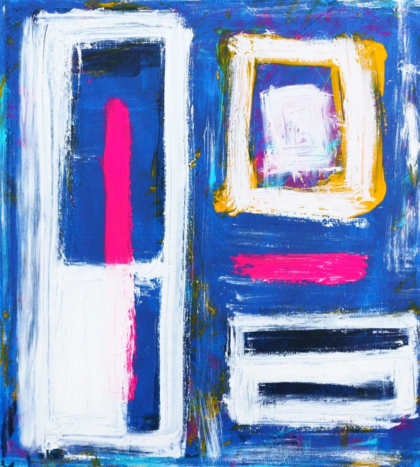 Within this body of work, the viewer becomes an accomplice. Rectangles and fields of color suggest doors and windows that lead not to a physical place, but to an emotional space: the precise moment when a look changes the course of a life, the instant the body recalls an embrace, or the quiet certainty of knowing — without words — that the right person has been found.