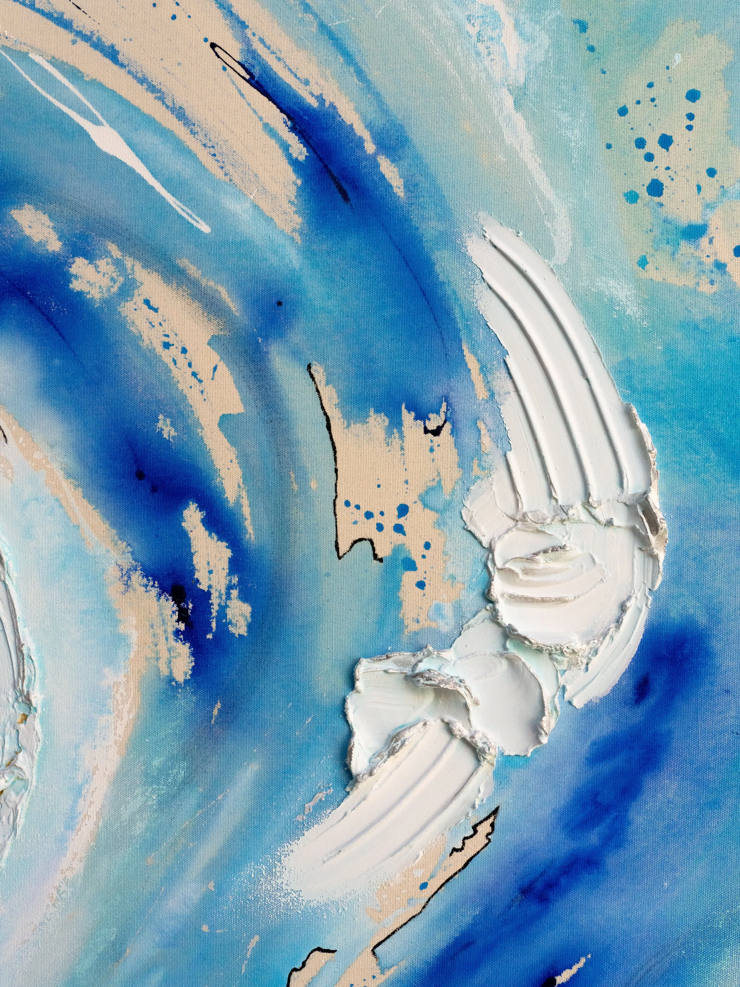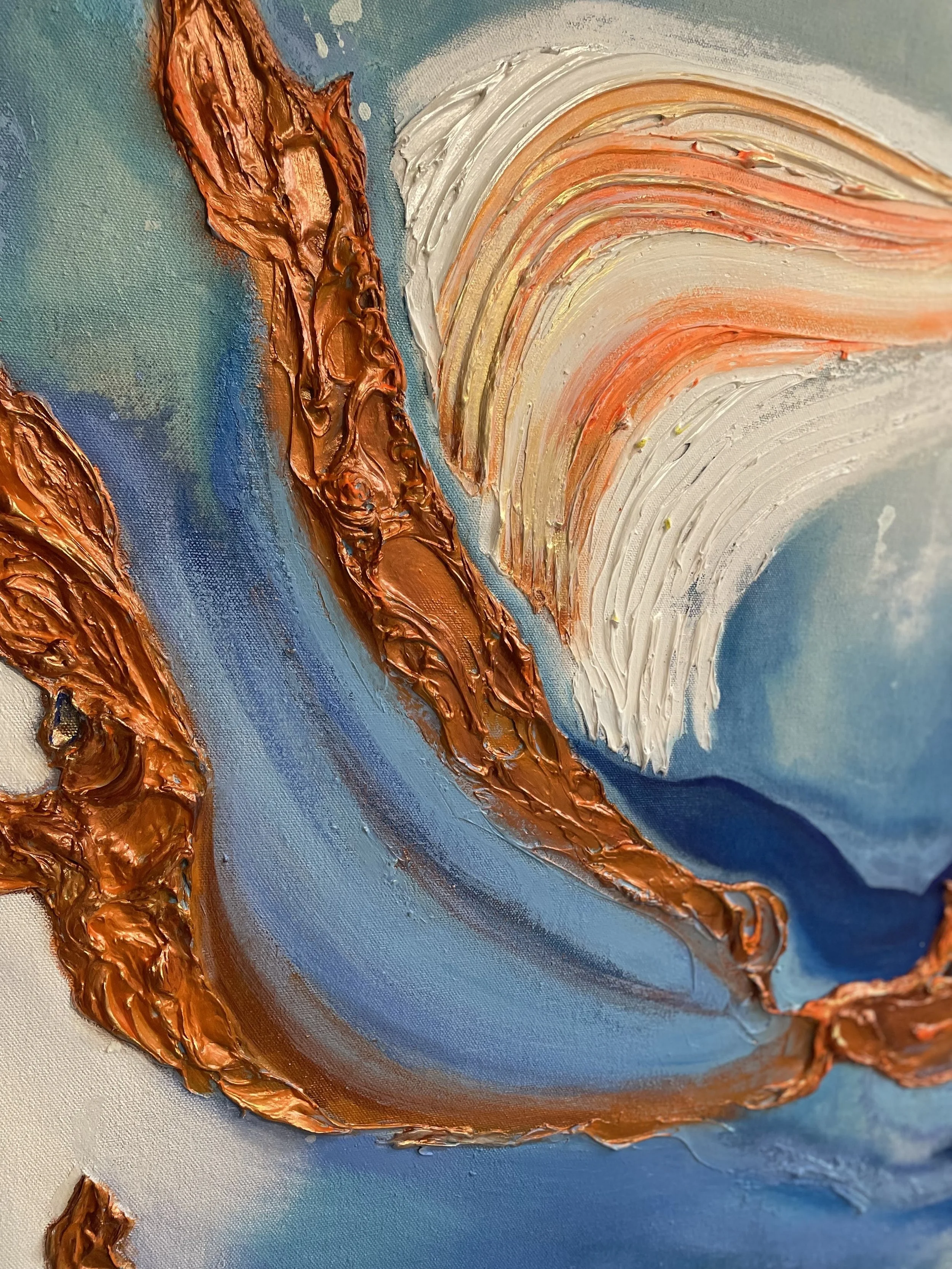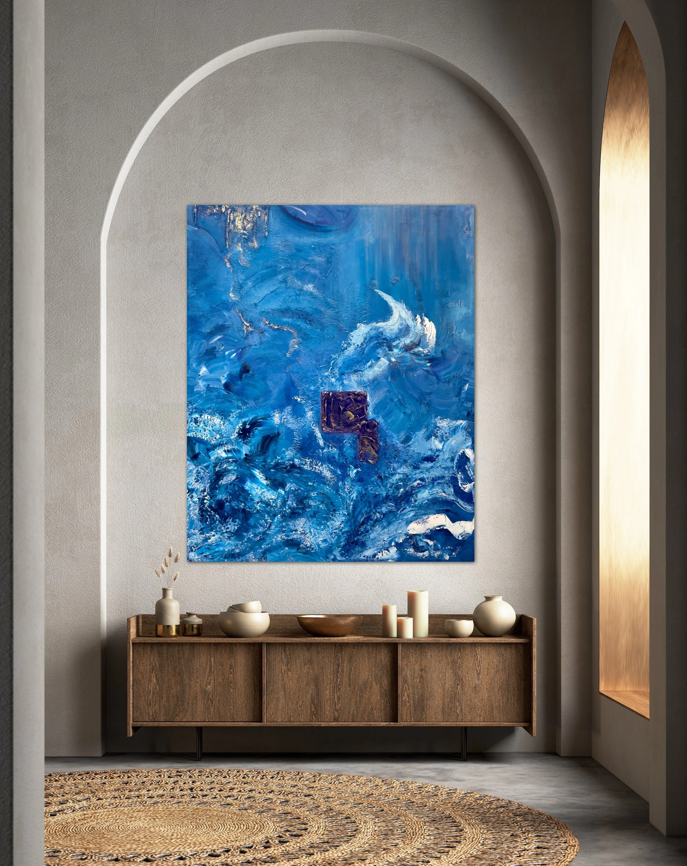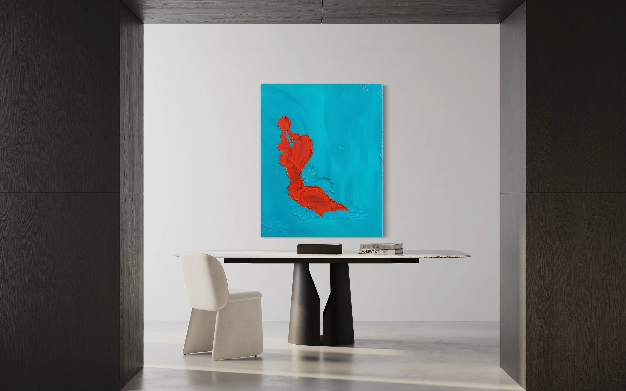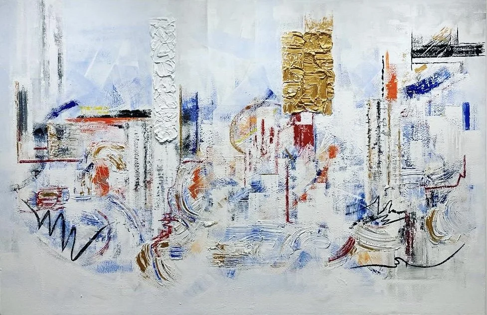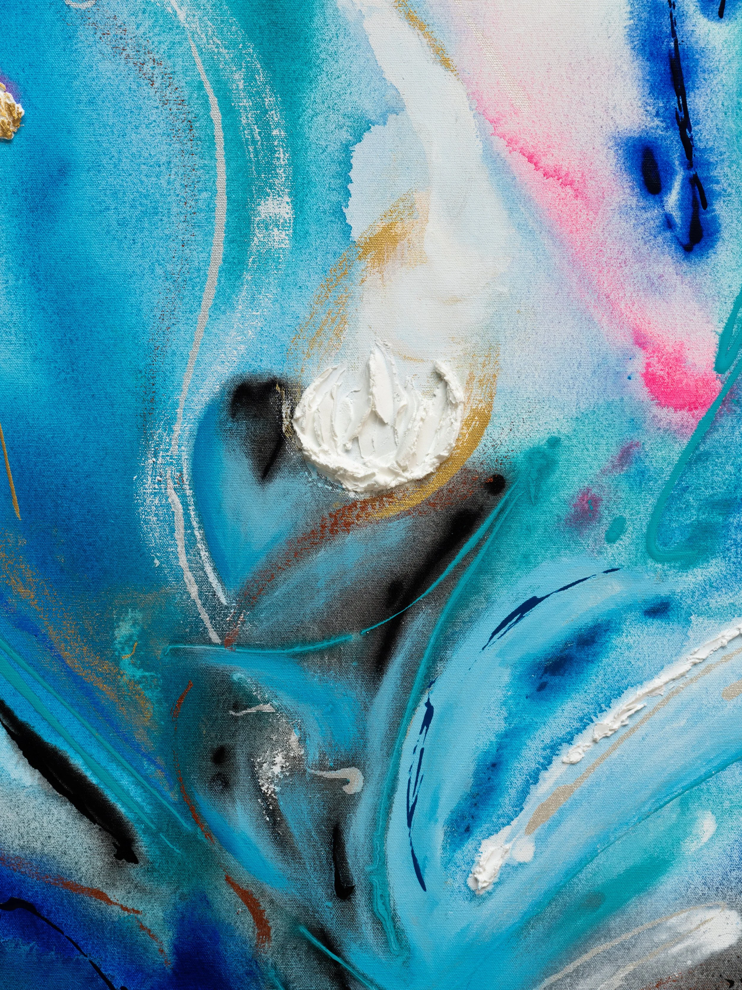 Rooted in gestural abstraction, Elena’s creative process embraces spontaneity, material exploration, and the beauty of controlled accidents. Her brushstrokes are intuitive yet masterful, evoking harmony, passion, and a palpable sense of depth.