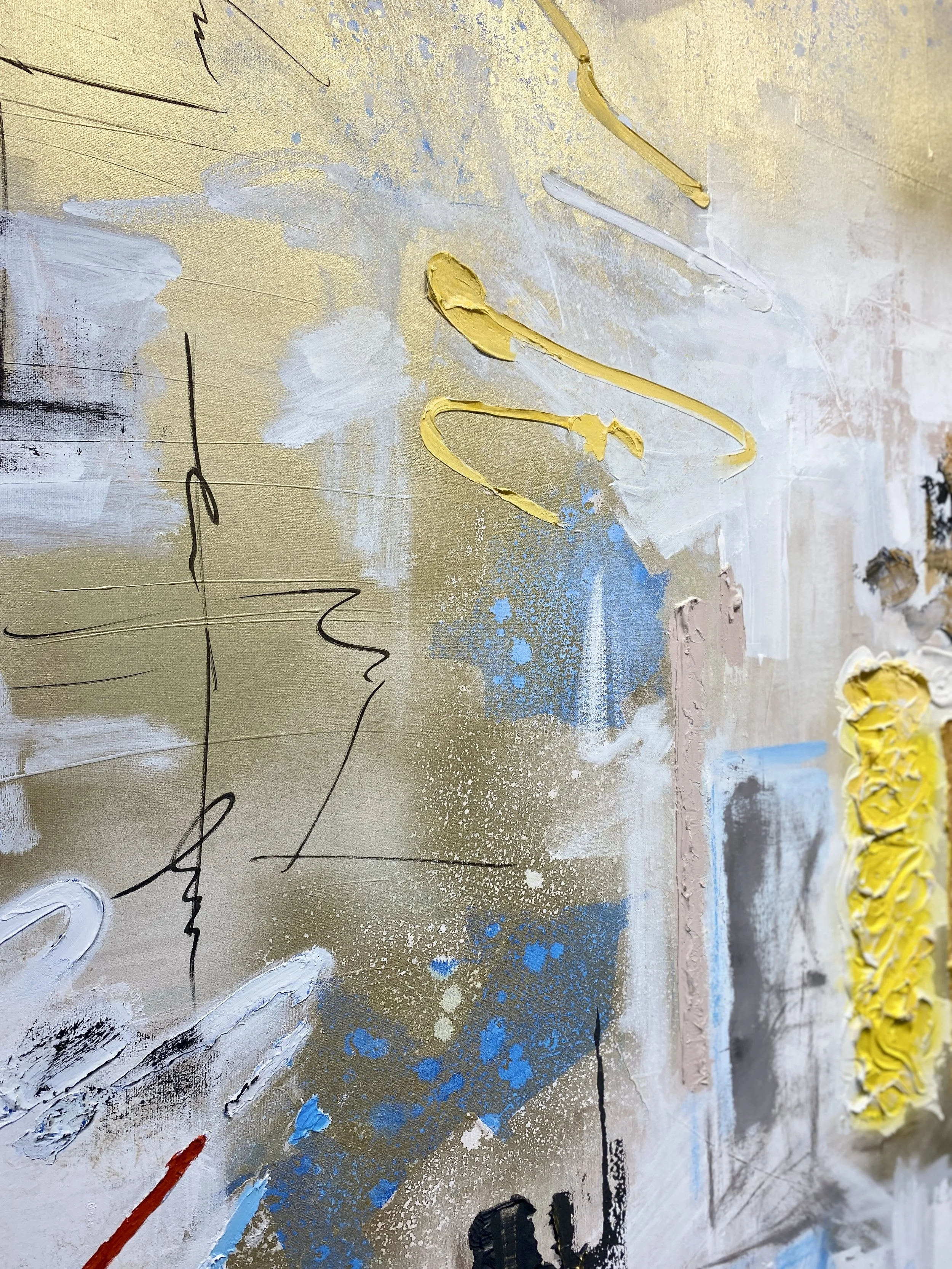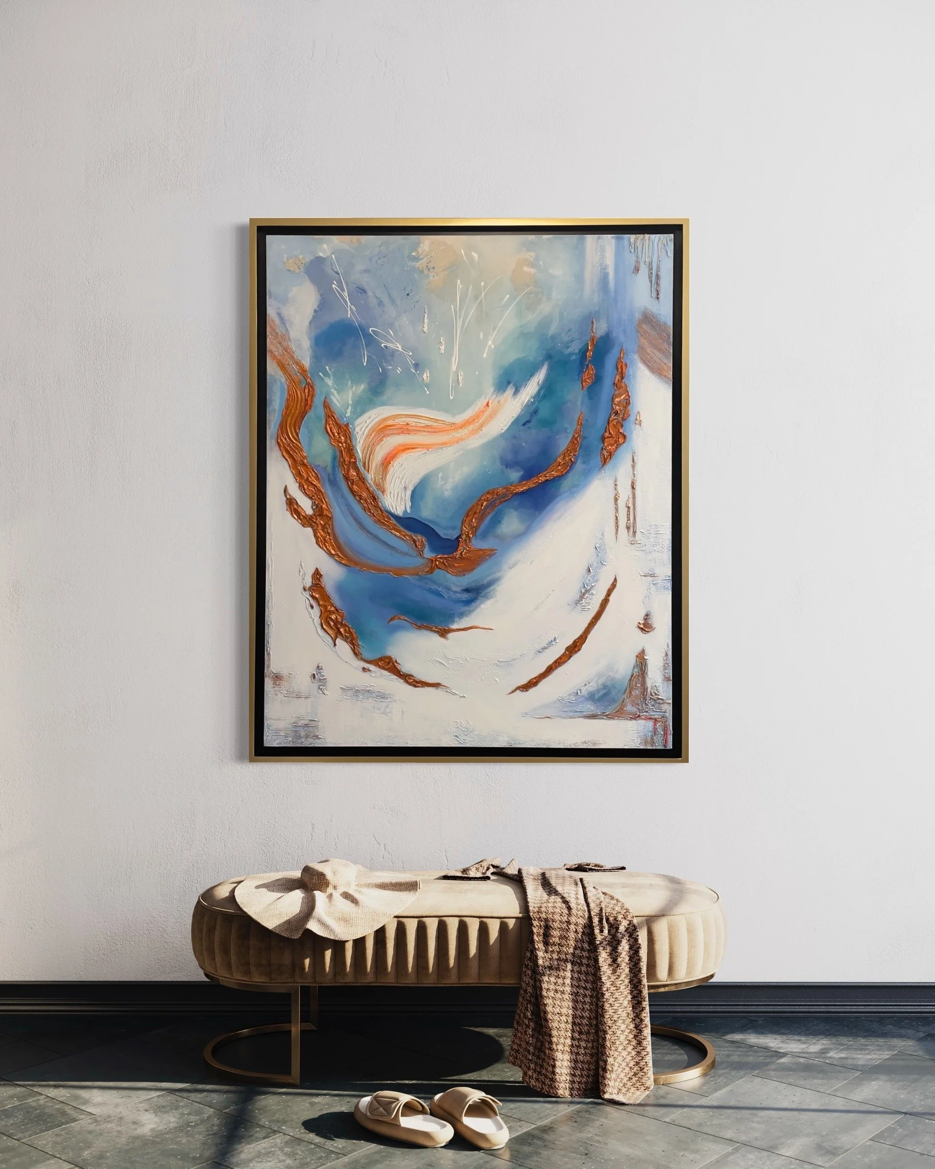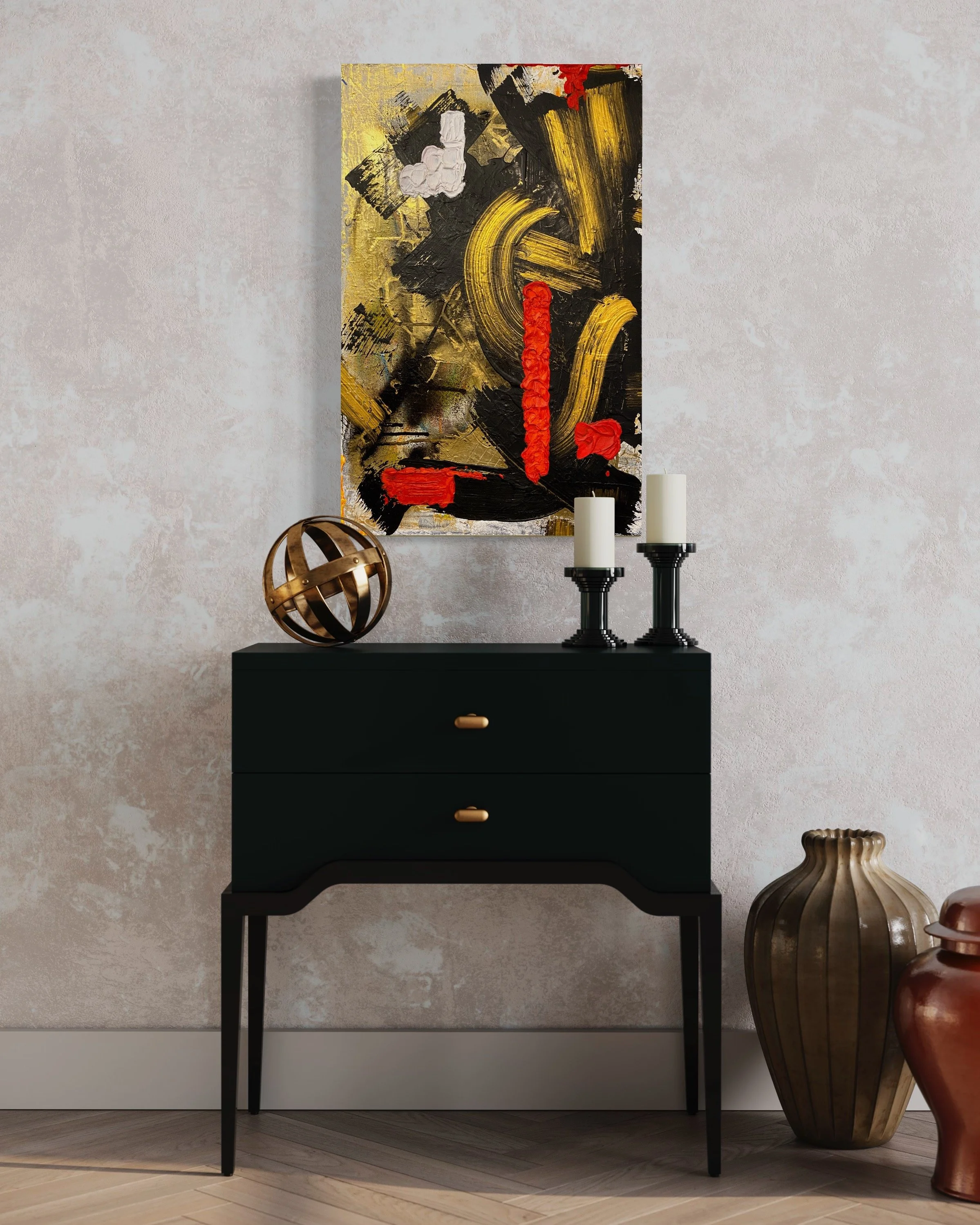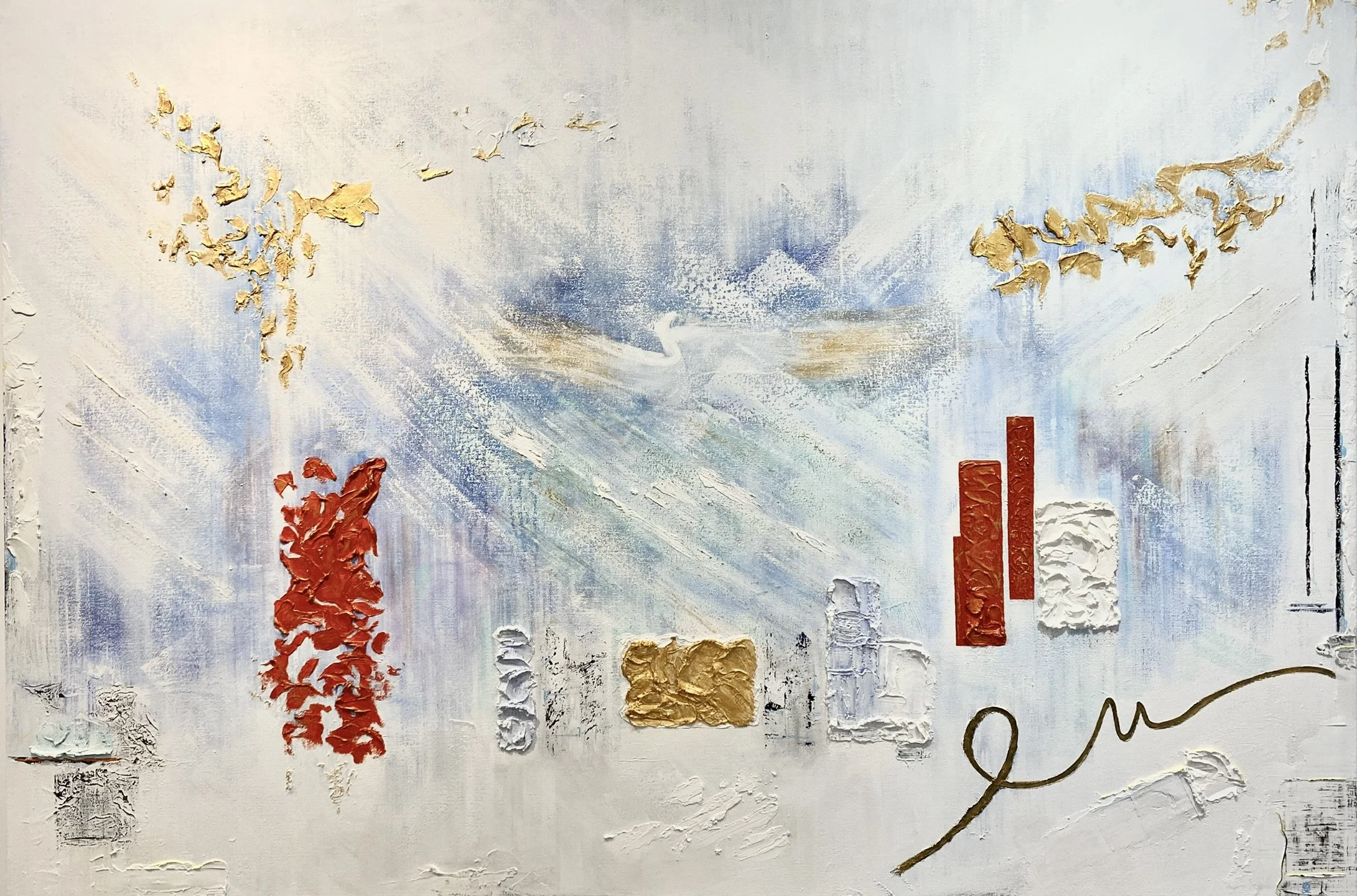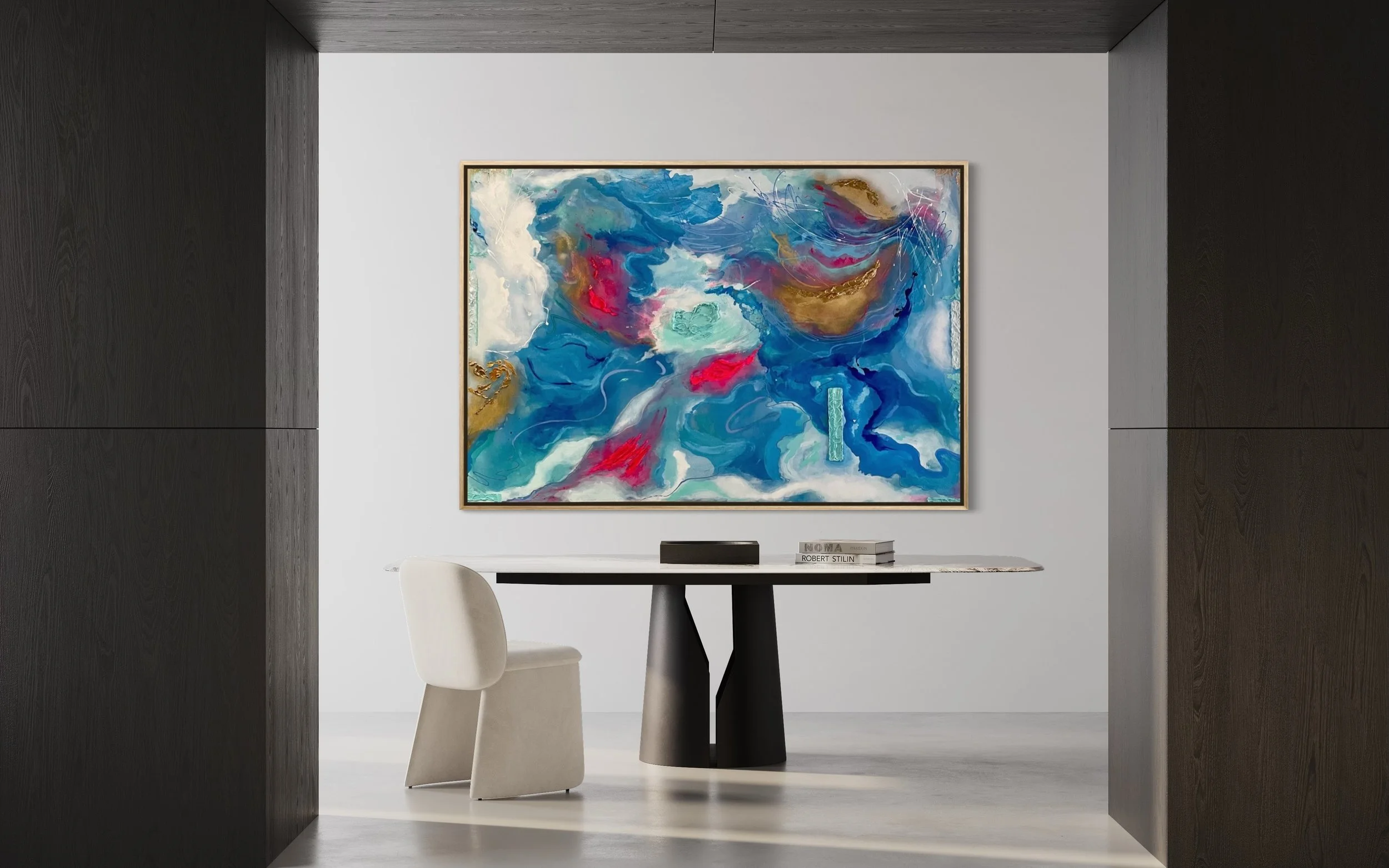 Rooted in gestural abstraction, Elena’s creative process embraces spontaneity, material exploration, and the beauty of controlled accidents. Her brushstrokes are intuitive yet masterful, evoking harmony, passion, and a palpable sense of depth.