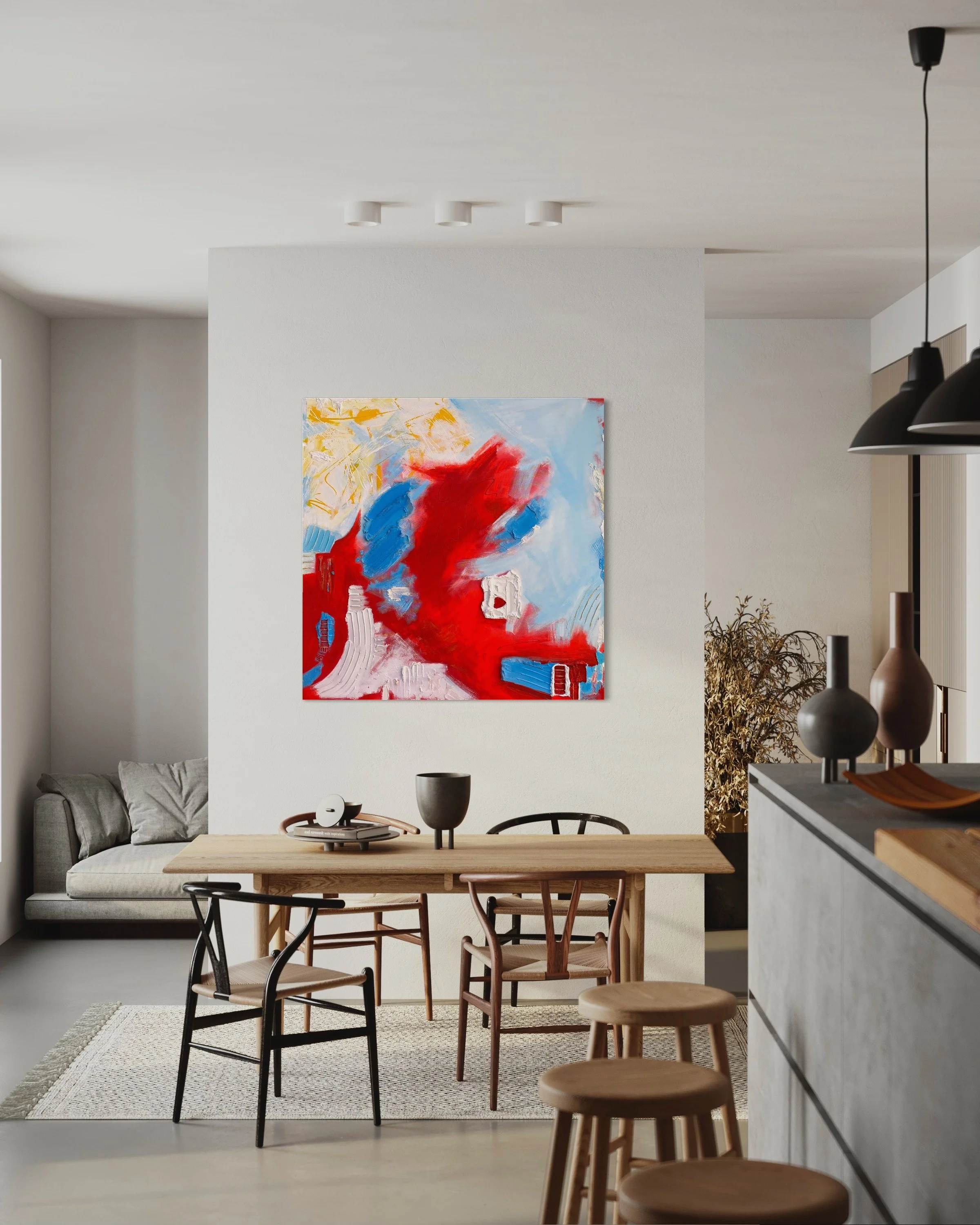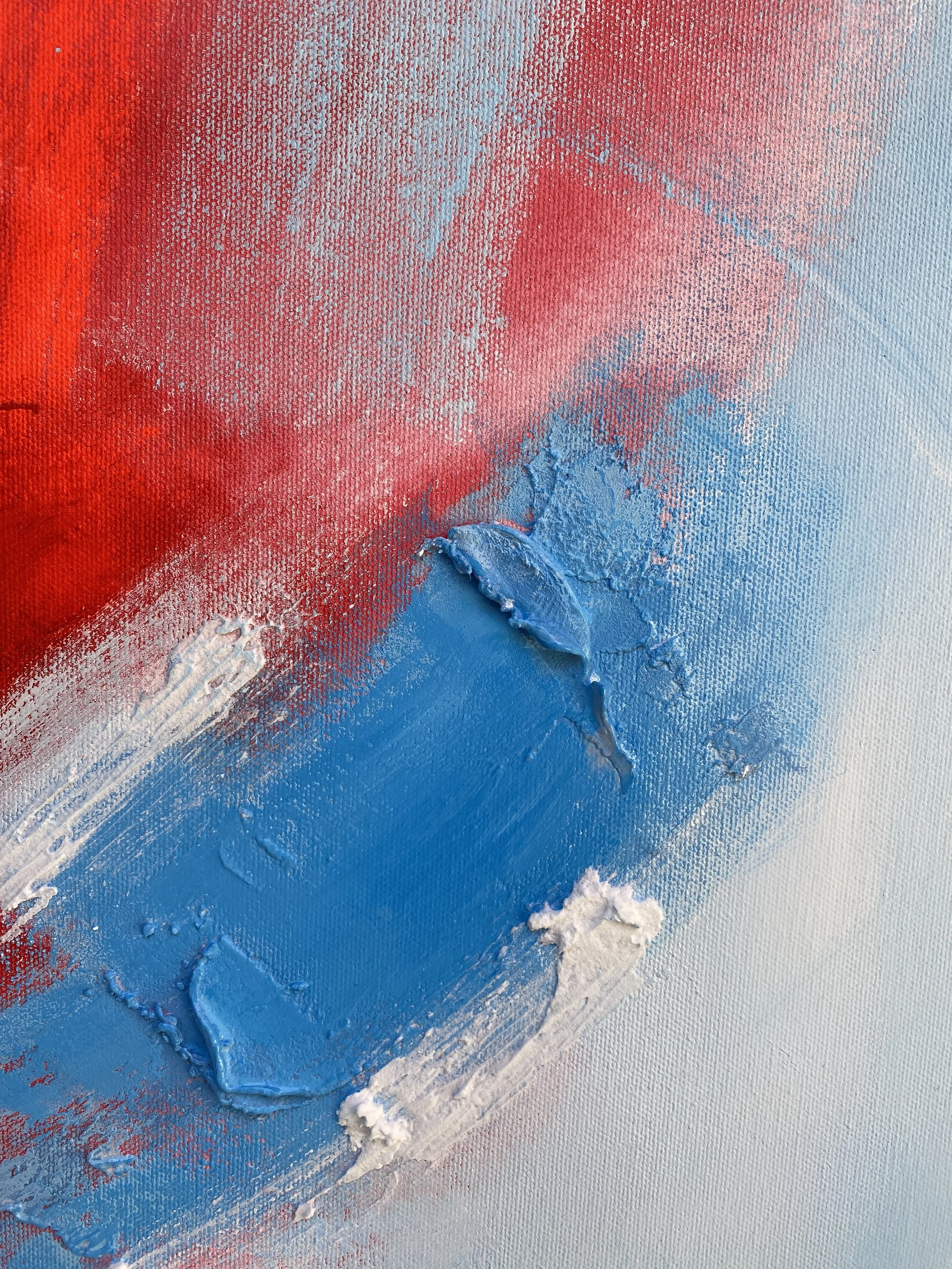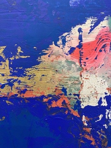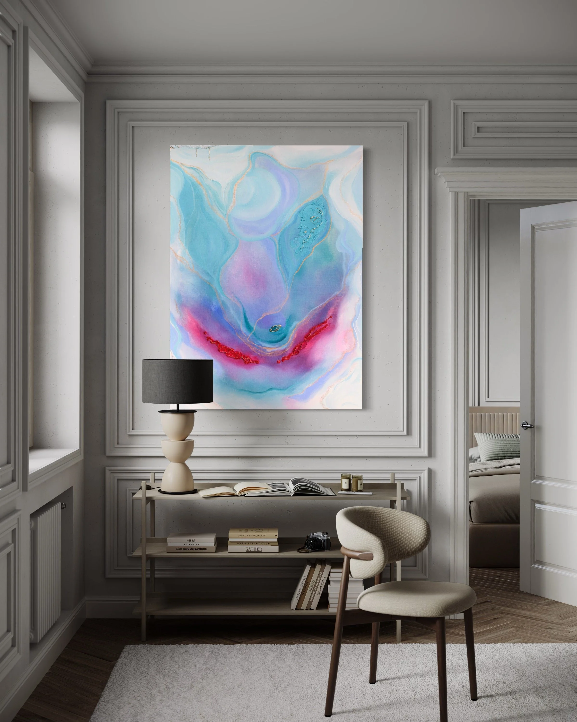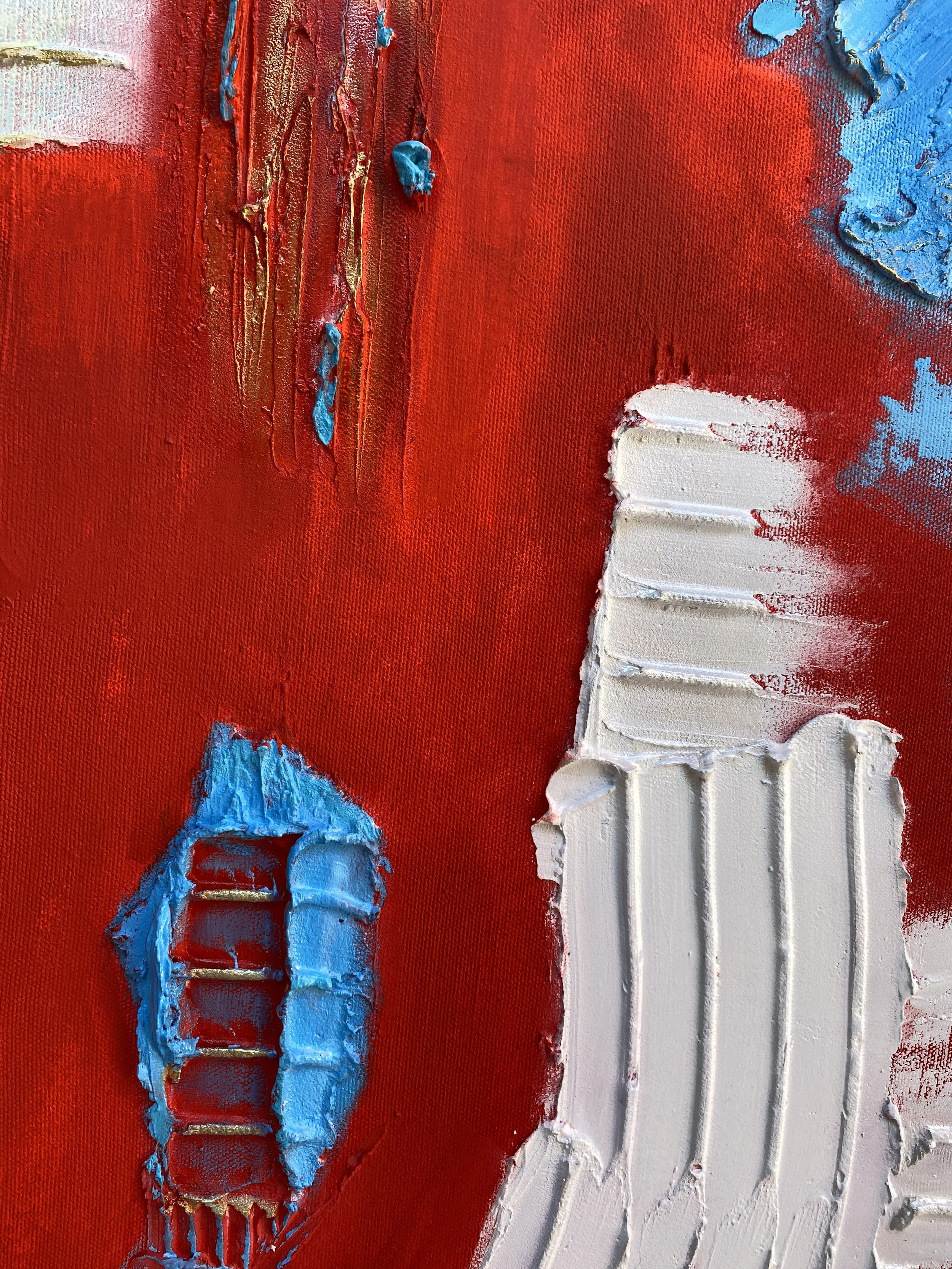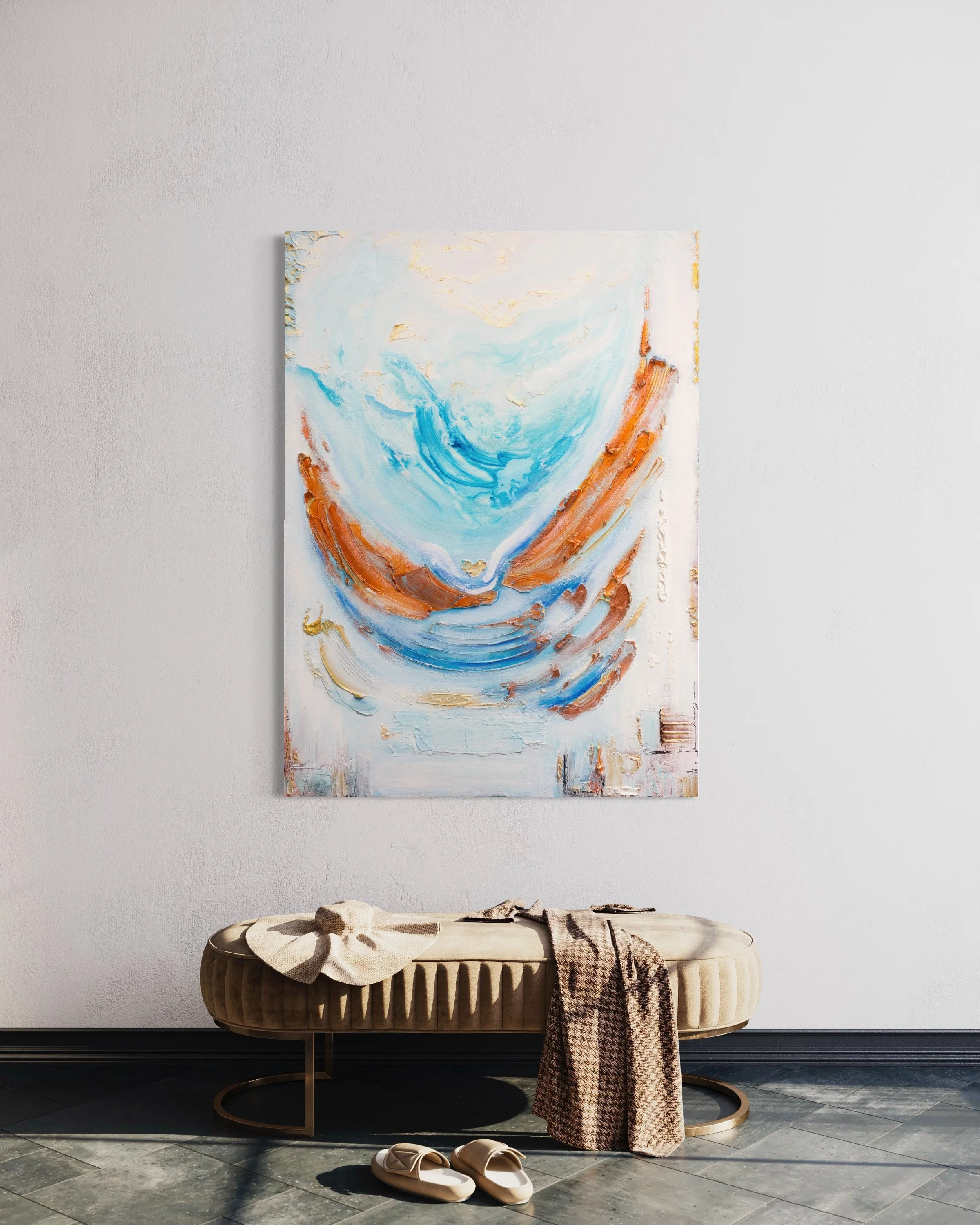 Rooted in gestural abstraction, Elena’s creative process embraces spontaneity, material exploration, and the beauty of controlled accidents. Her brushstrokes are intuitive yet masterful, evoking harmony, passion, and a palpable sense of depth.