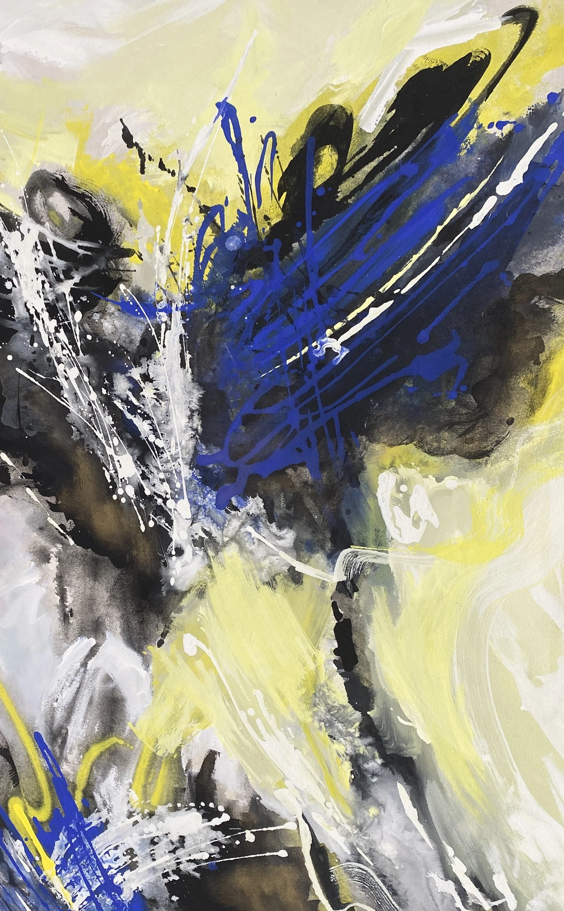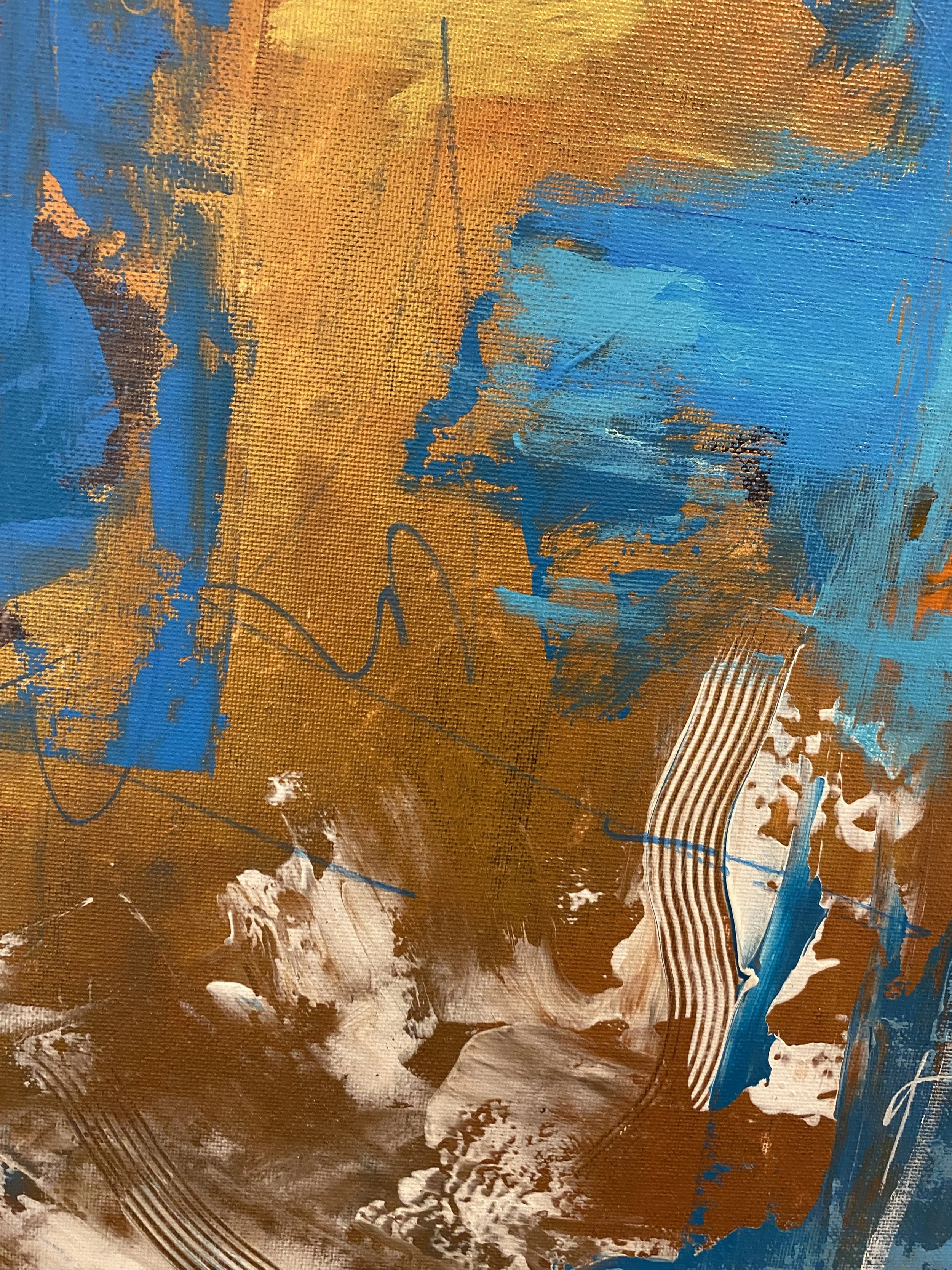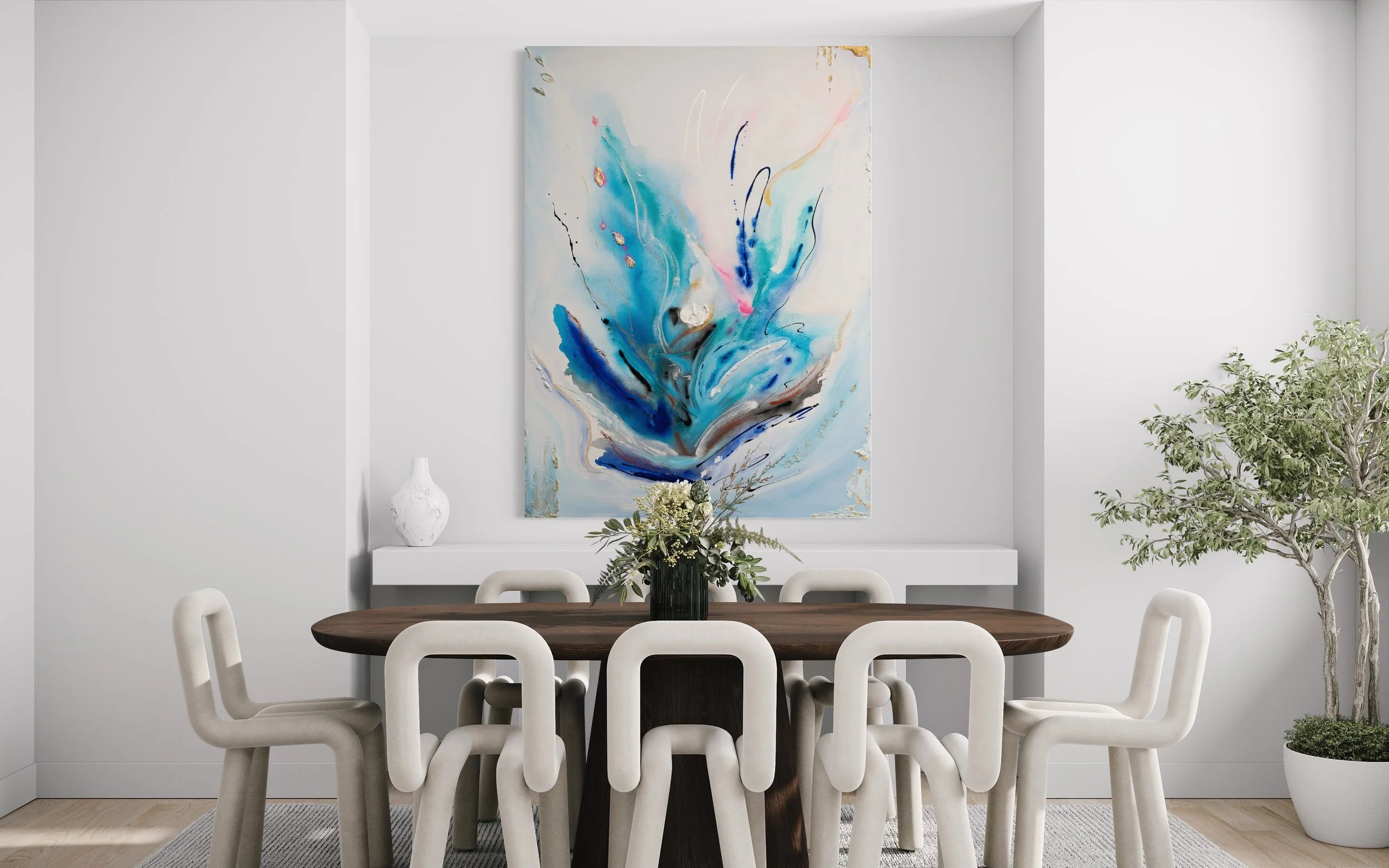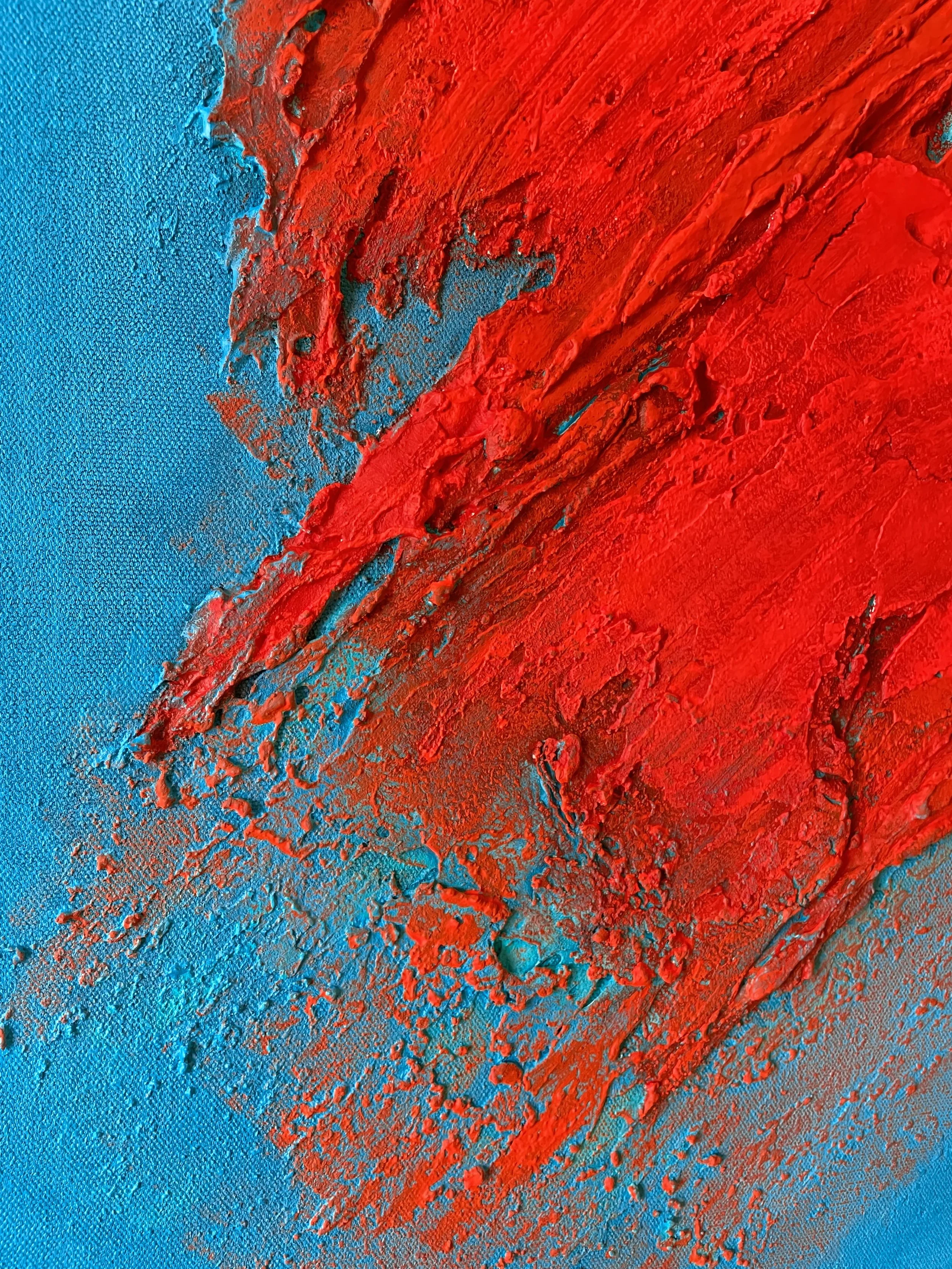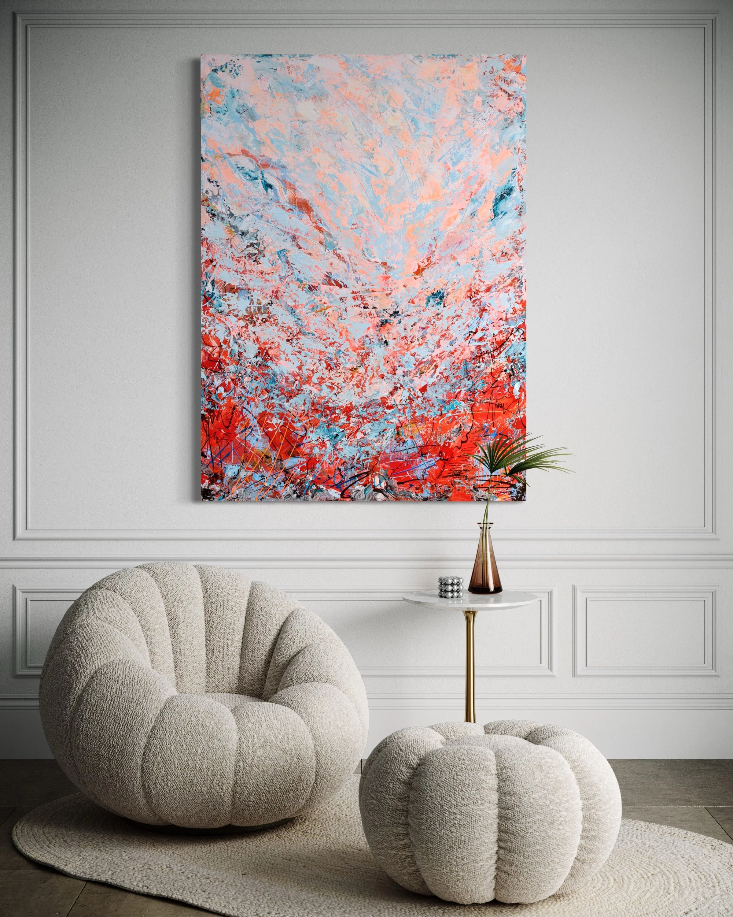 Rooted in gestural abstraction, Elena’s creative process embraces spontaneity, material exploration, and the beauty of controlled accidents. Her brushstrokes are intuitive yet masterful, evoking harmony, passion, and a palpable sense of depth.
