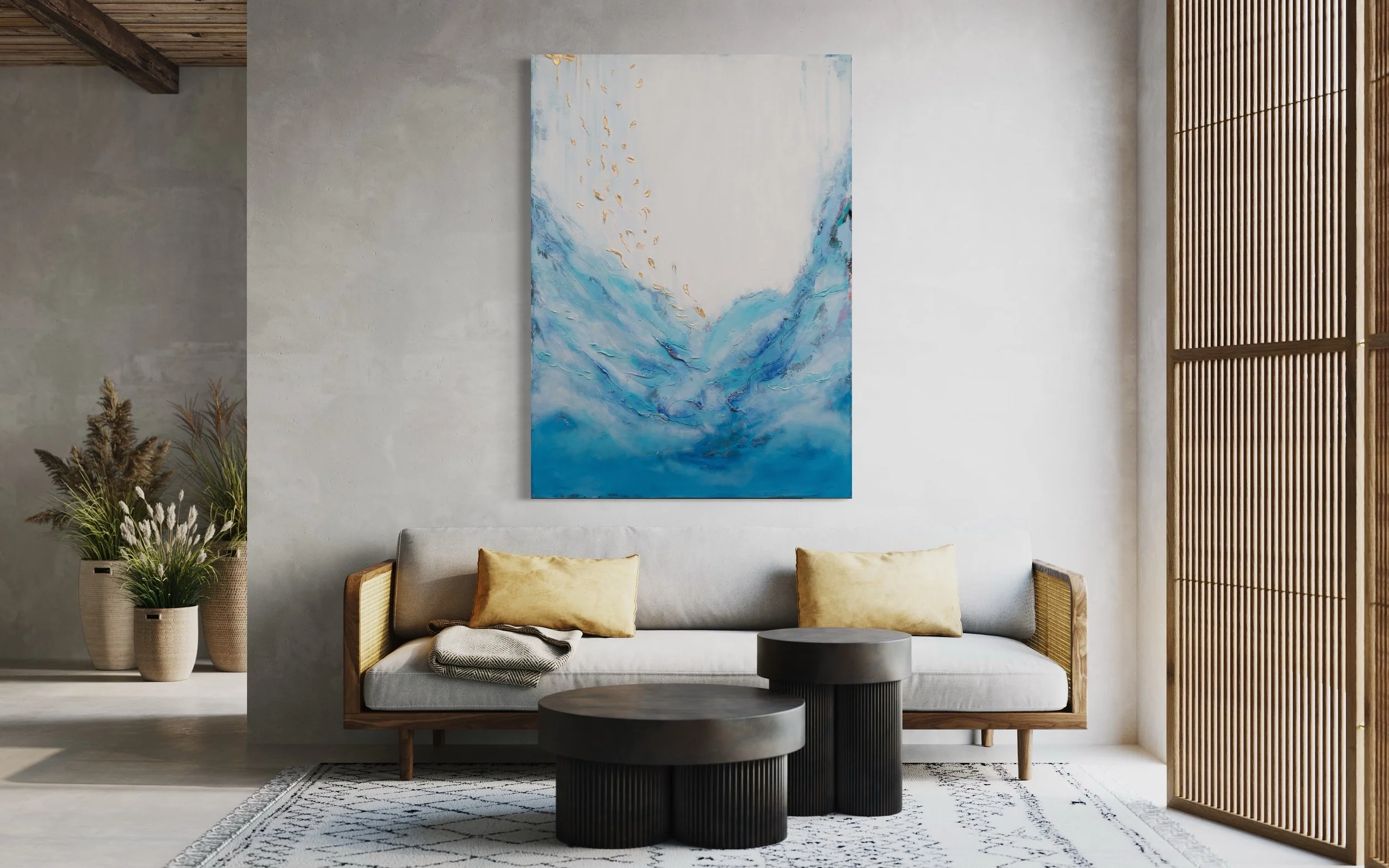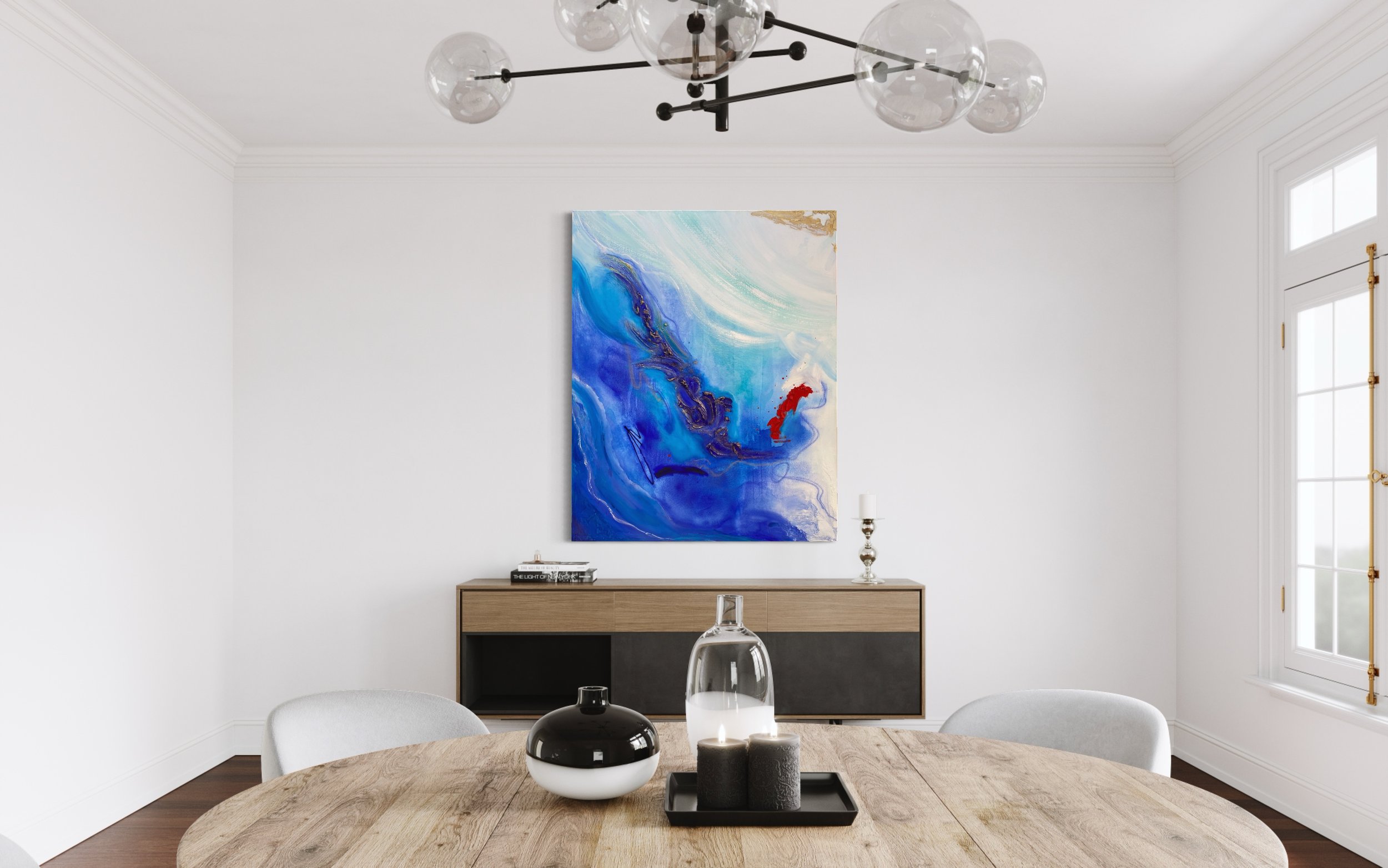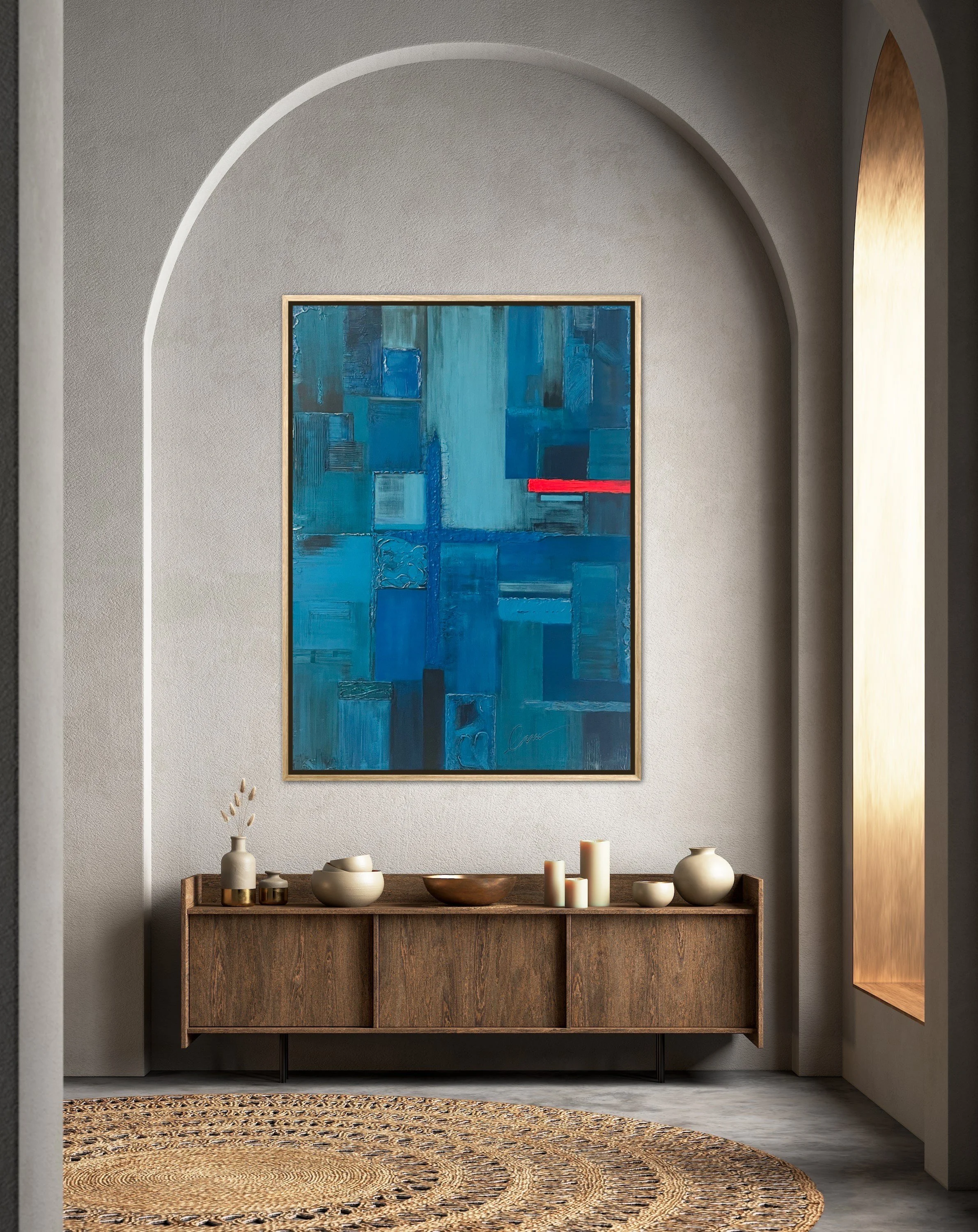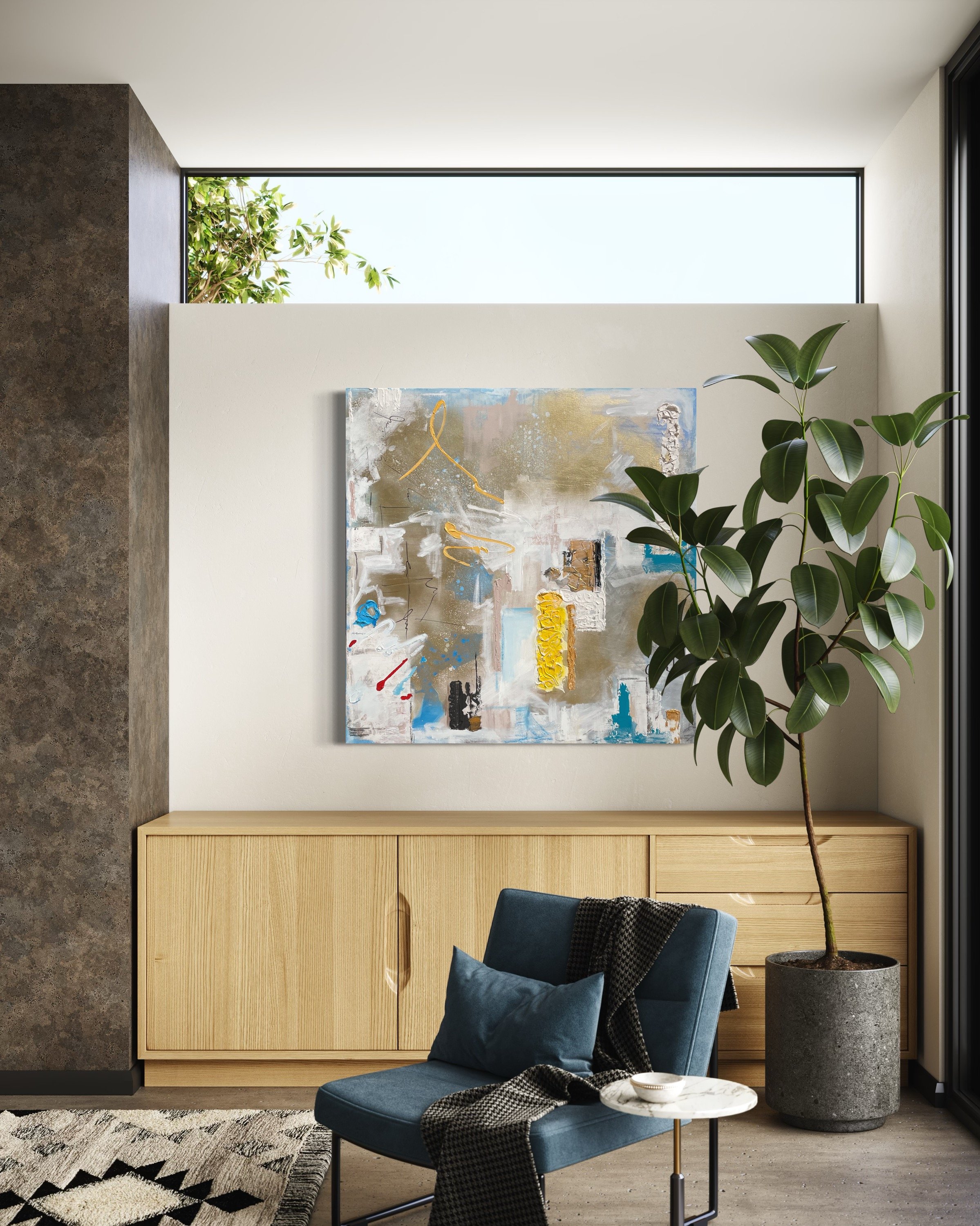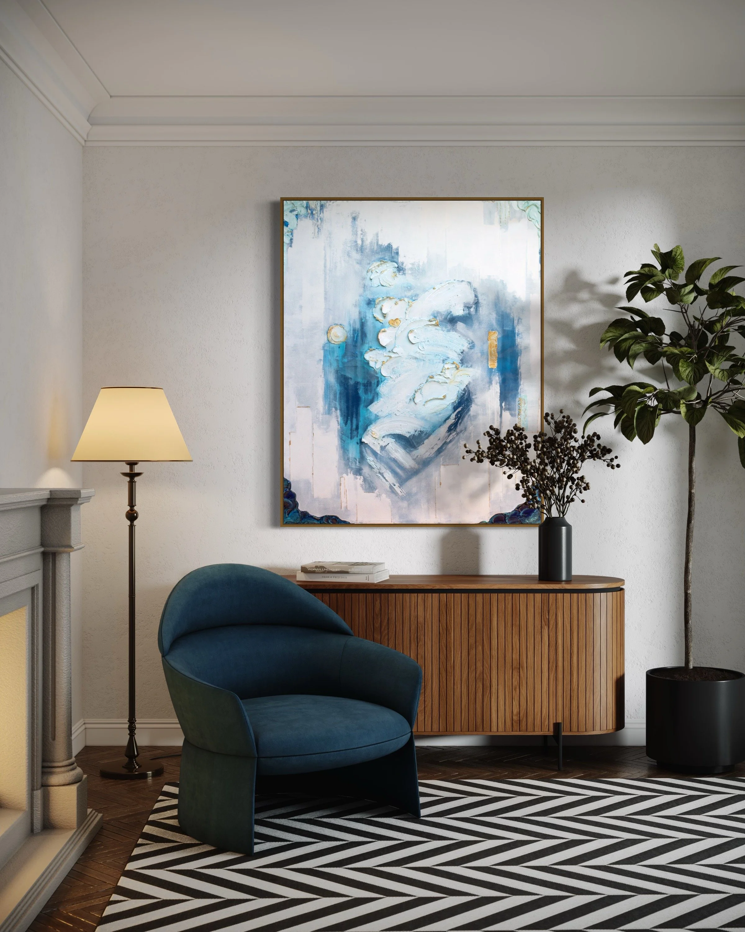Rooted in gestural abstraction, Elena’s creative process embraces spontaneity, material exploration, and the beauty of controlled accidents. Her brushstrokes are intuitive yet masterful, evoking harmony, passion, and a palpable sense of depth.