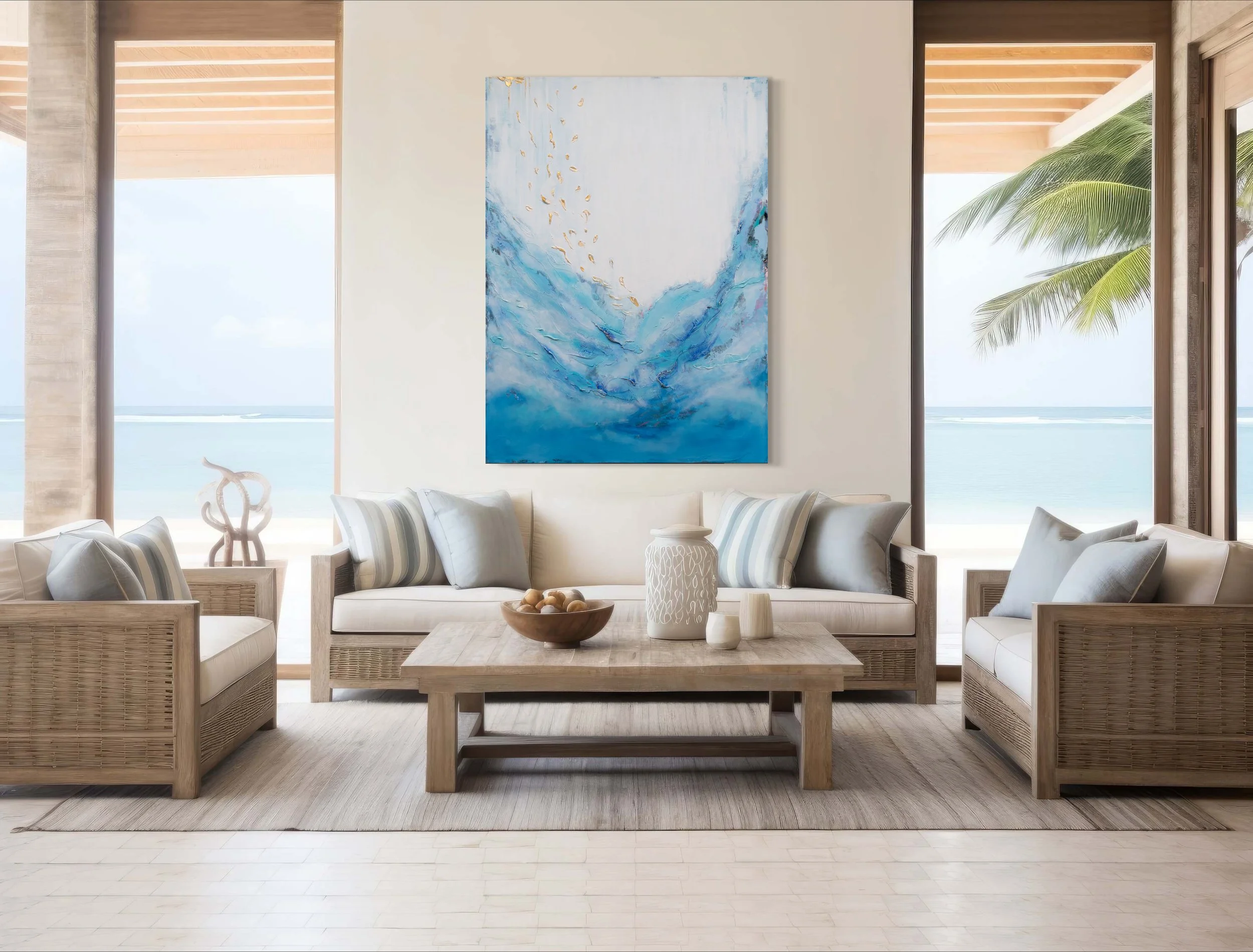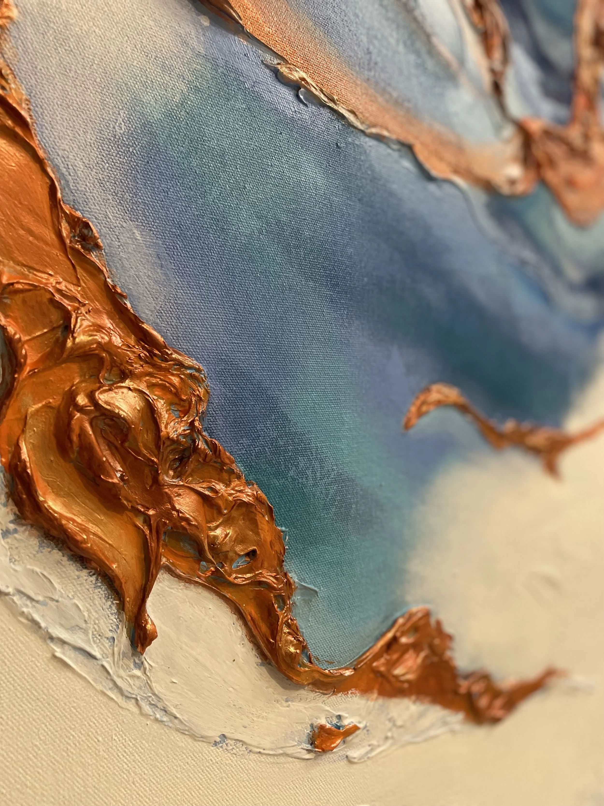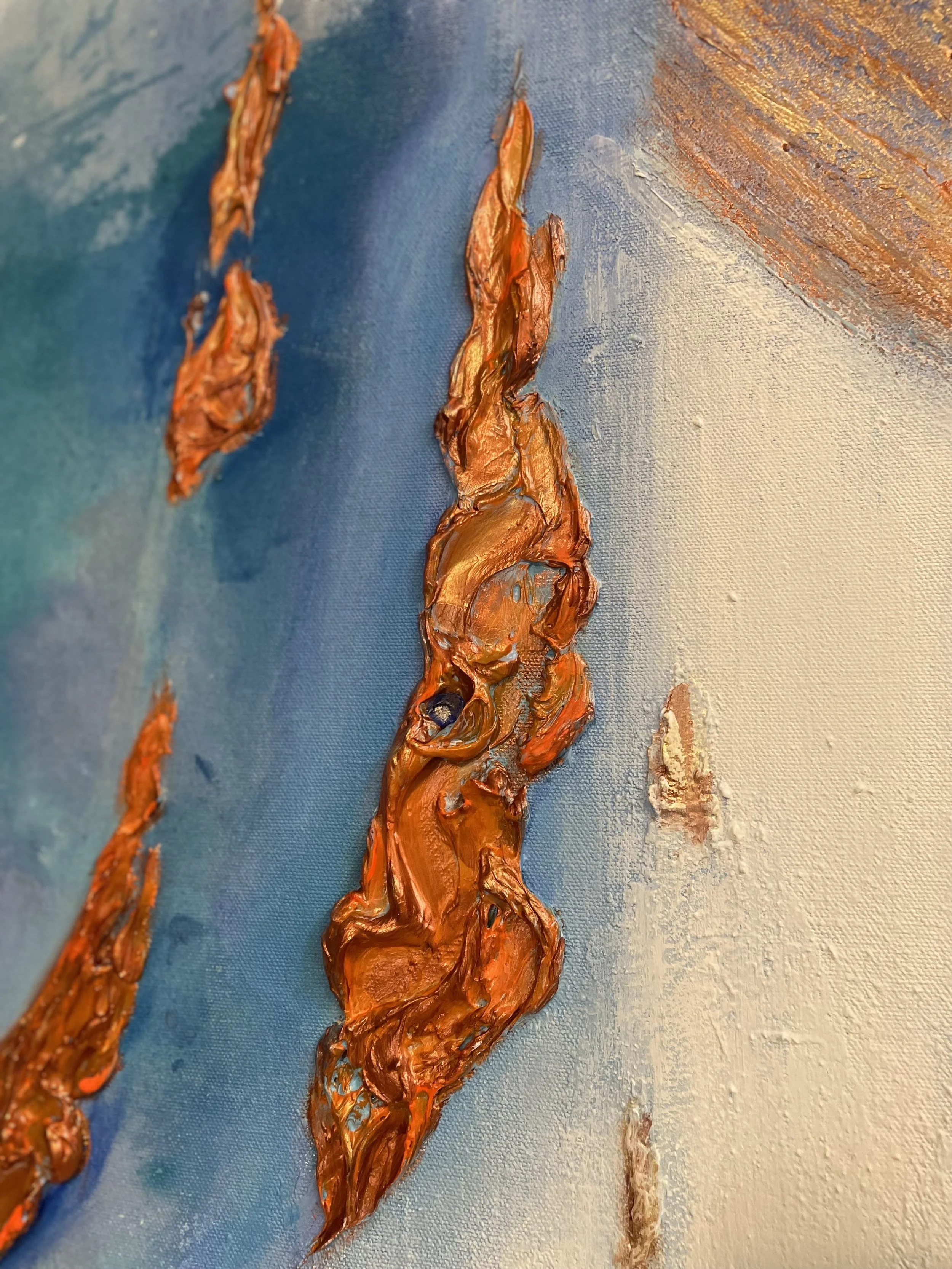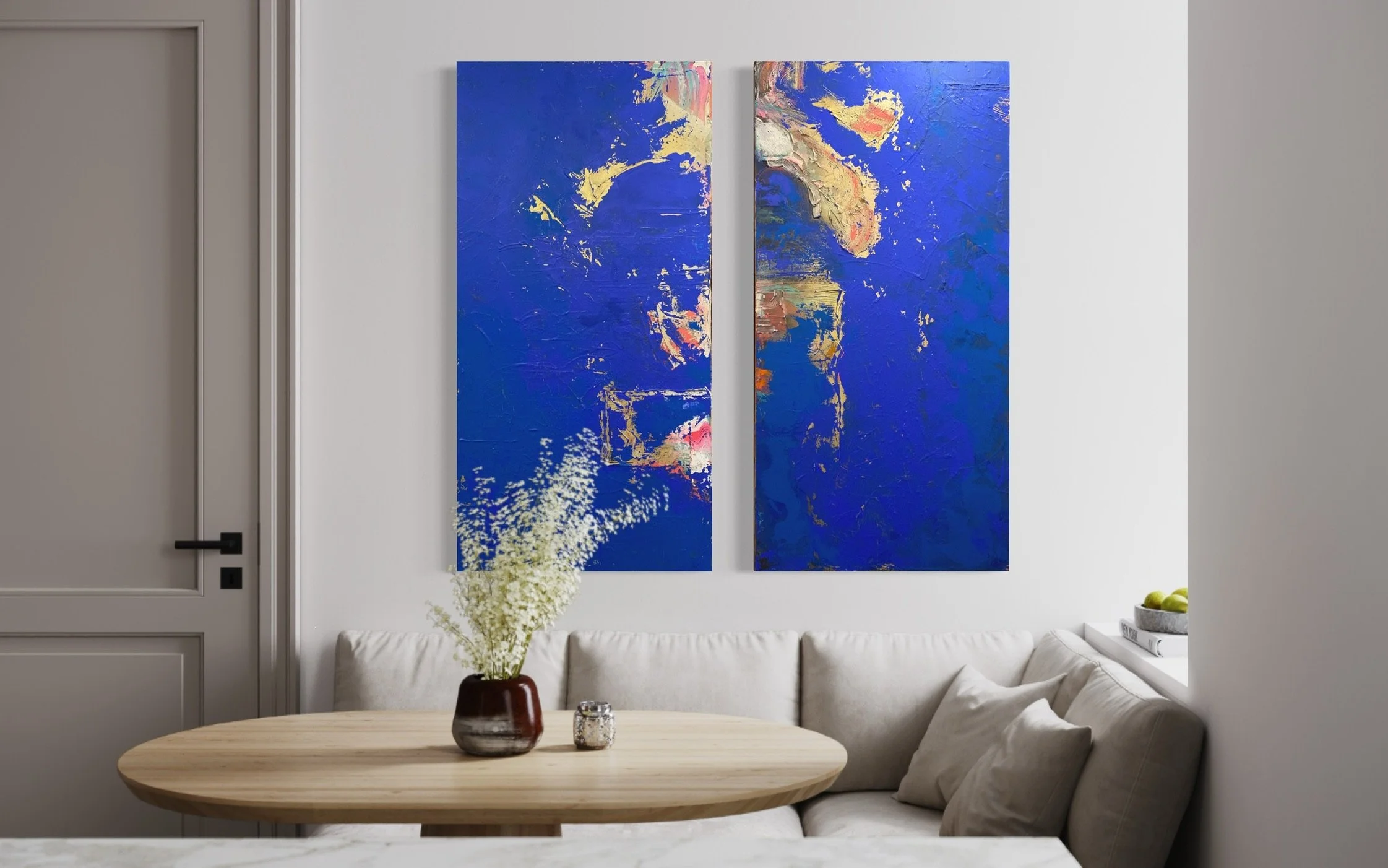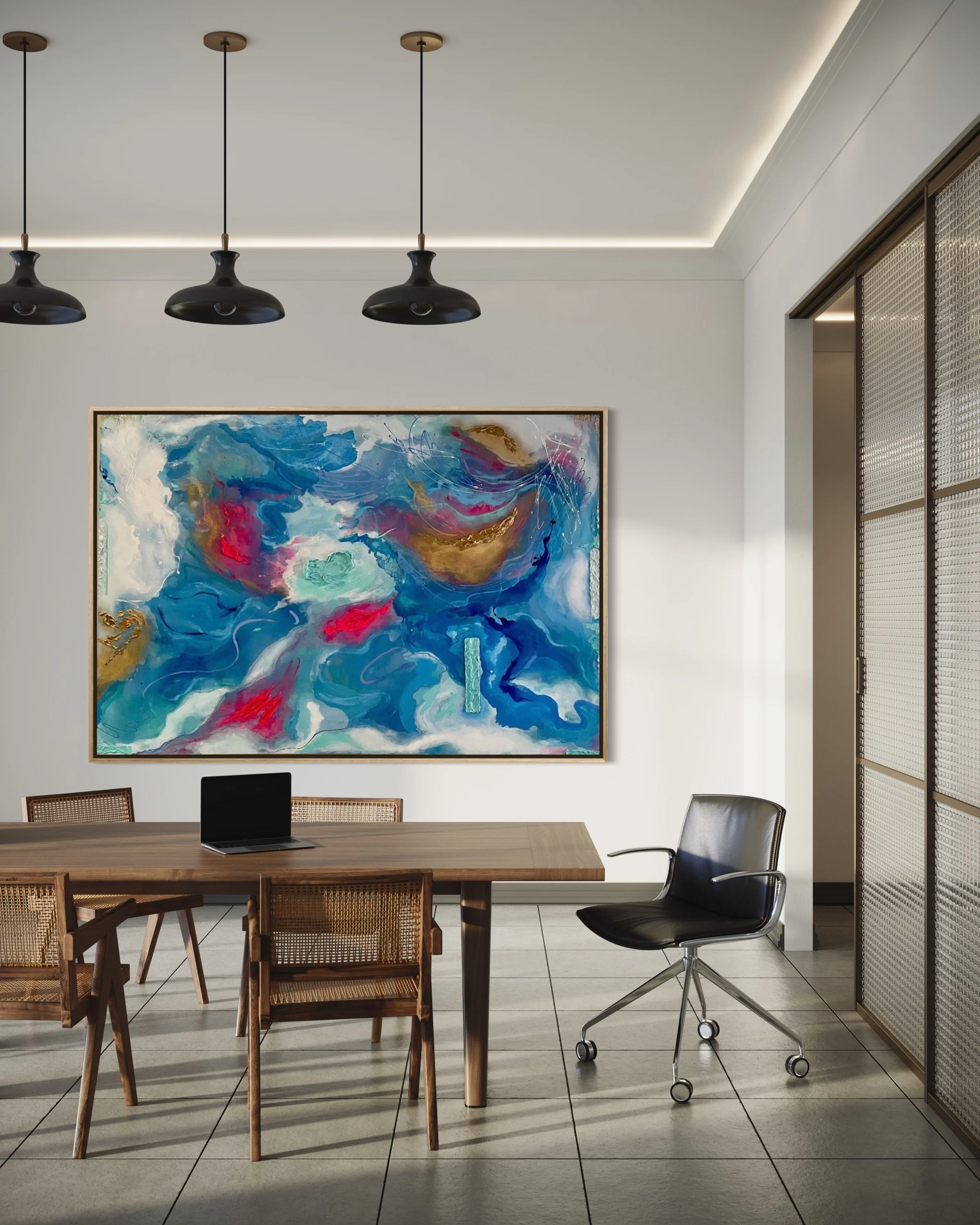 Rooted in gestural abstraction, Elena’s creative process embraces spontaneity, material exploration, and the beauty of controlled accidents. Her brushstrokes are intuitive yet masterful, evoking harmony, passion, and a palpable sense of depth.